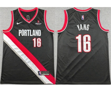 Men's Portland Trail Blazers #16 Yang Hansen Black Icon Edition Stitched Basketball Jersey