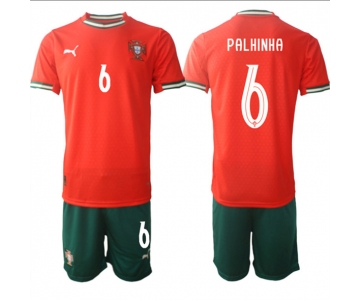 Men's Portugal Team #6 Joao Palhinha 2025 Red Home Soccer Jersey Suit