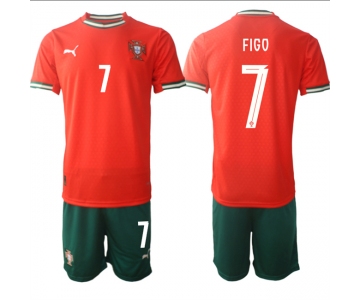 Men's Portugal Team #7 Luís Figo 2025 Red Home Soccer Jersey Suit