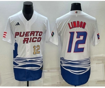 Men's Puerto Rico Baseball #23 Francisco Lindor Number White 2023 World Baseball Classic Stitched Jerseys