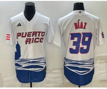Men's Puerto Rico Baseball #39 Edwin Diaz 2023 White World Baseball Classic Stitched Jerseys