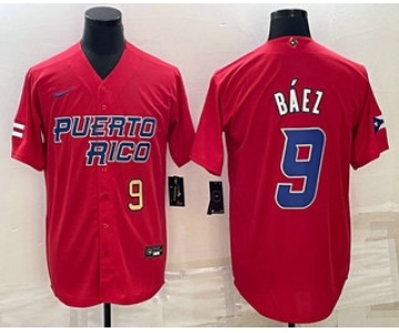 Men's Puerto Rico Baseball #9 Javier Baez 2023 Red World Baseball Classic Stitched Jerseys