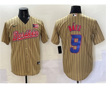 Men's Puerto Rico Baseball #9 Javier Baez Tan 2023 World Baseball Classic Stitched Jersey