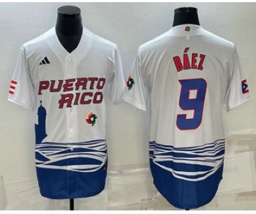 Men's Puerto Rico Baseball #9 Javier Baez White 2023 World Baseball Classic Stitched Jerseys