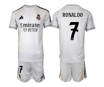 Men's Real Madrid #7 Ronaldo 25-26 White Home Soccer Jersey Suit