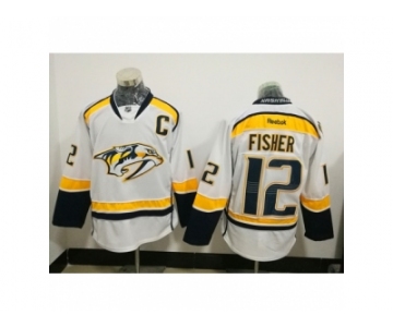 Men's Reebok Nashville Predators #12 Mike Fisher Authentic White Away NHL Jersey C patch