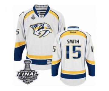 Men's Reebok Nashville Predators #15 Craig Smith Premier White Away 2017 Stanley Cup Final NHL Jersey