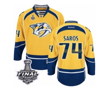 Men's Reebok Nashville Predators #74 Juuse Saros Premier Gold Home 2017 Stanley Cup Final NHL Jersey