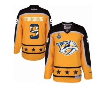 Men's Reebok Nashville Predators #9 Filip Forsberg Authentic Gold Home 2017 Stanley Cup Final NHL Jersey