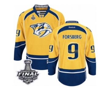 Men's Reebok Nashville Predators #9 Filip Forsberg Premier Gold Home 2017 Stanley Cup Final NHL Jersey