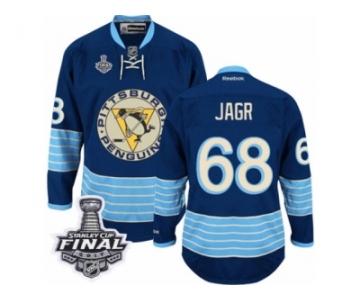 Men's Reebok Pittsburgh Penguins #68 Jaromir Jagr Authentic Navy Blue Third Vintage 2017 Stanley Cup Final NHL Jersey