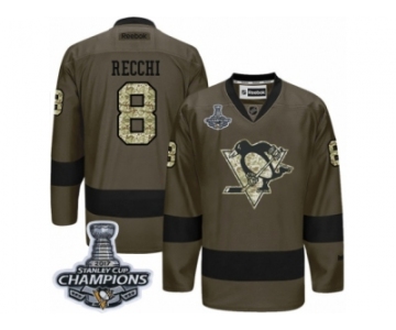Men's Reebok Pittsburgh Penguins #8 Mark Recchi Premier Green Salute to Service 2017 Stanley Cup Champions NHL Jersey