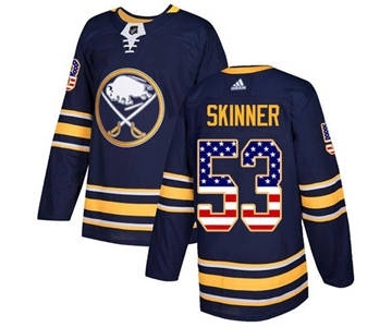 Men's Sabres #53 Jeff Skinner Navy Blue Home USA Flag Stitched Hockey Jersey