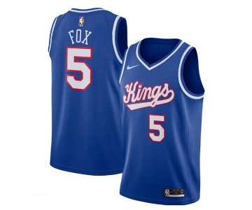 Men's Sacramento Kings #5 De'Aaron Fox Blue 2019-20 Hardwood Classics Swingman Stitched Basketball Jersey