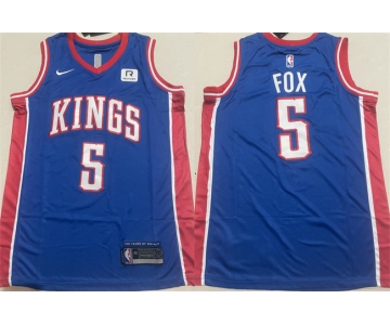Men's Sacramento Kings #5 De'Aaron Fox Blue Stitched Jersey
