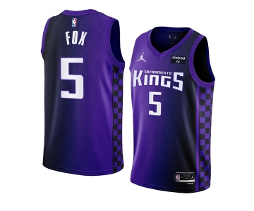 Men's Sacramento Kings #5 De’Aaron Fox Purple 2023-24 Statement Edition Swingman Stitched Jersey