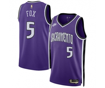Men's Sacramento Kings #5 De'Aaron Fox Purple 2024-25 Classic Edition Swingman Stitched Basketball Jersey