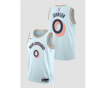 Men's San Antonio Spurs #0 Keldon Johnson Light Blue 2024-25 City Edition Stitched Basketball Jersey