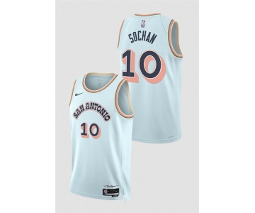 Men's San Antonio Spurs #10 Jeremy Sochan Light Blue 2024-25 City Edition Stitched Basketball Jersey