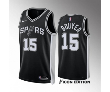 Men's San Antonio Spurs #15 Jamaree Bouyea Black Icon Edition Stitched Basketball Jersey