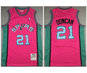 Men's San Antonio Spurs #21 Tim Duncan 1998-99 Pink Throwback Stitched Basketball Jersey