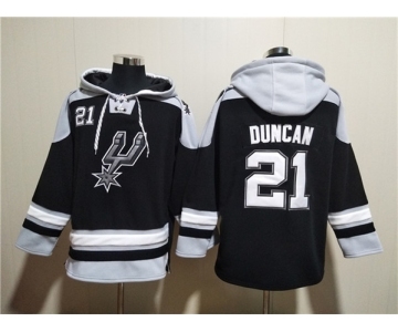 Men's San Antonio Spurs #21 Tim Duncan Black Ageless Must-Have Lace-Up Pullover Hoodie