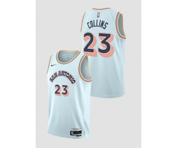 Men's San Antonio Spurs #23 Zach Collins Light Blue 2024-25 City Edition Stitched Basketball Jersey