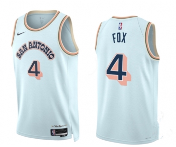 Men's San Antonio Spurs #4 DeAaron Fox Light Blue 2024-25 City Edition Stitched Basketball Jersey