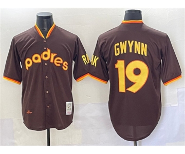 Men's San Diego Padres #19 Tony Gwynn Brown Throwback Stitched Baseball Jersey