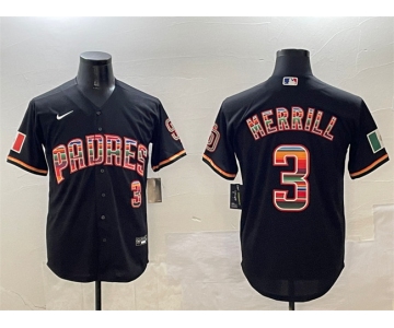 Your Position: Home>NIKE MLB Jerseys>Diego Padres>Men>Men's San Diego Padres #3 Jackson Merrill Black Mexico Cool Base Stitched Baseball Jersey