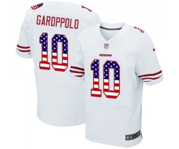 Men's San Francisco 49ers #10 Jimmy Garoppolo Elite White Road USA Flag Fashion Football Jersey