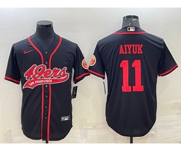 Men's San Francisco 49ers #11 Brandon Aiyuk Black With Patch Cool Base Stitched Baseball Jersey