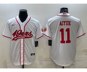 Men's San Francisco 49ers #11 Brandon Aiyuk White With Patch Cool Base Stitched Baseball Jersey