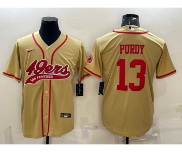 Men's San Francisco 49ers #13 Brock Purdy Gold With Patch Cool Base Stitched Baseball Jersey