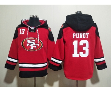 Your Position: Home>NIKE NFL Jerseys>Nike San Francisco 49ers>NFL pullover hooded sweatshirt>Men>Men's San Francisco 49ers #13 Brock Purdy Red Black Ageless Must-Have Lace-Up Pullover Hoodie