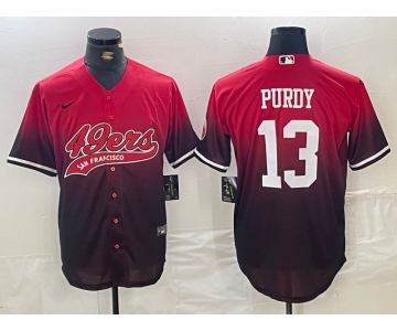 Men's San Francisco 49ers #13 Brock Purdy Red Black Stitched Baseball Jersey