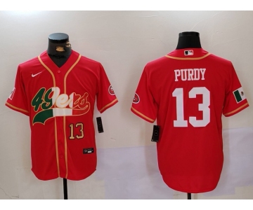 Men's San Francisco 49ers #13 Brock Purdy Red With Patch Cool Base Stitched Baseball Jerseys