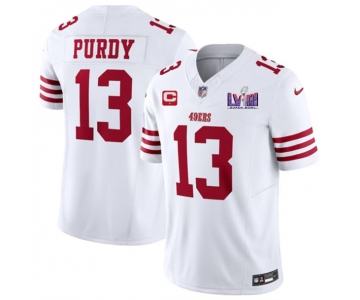 Men's San Francisco 49ers #13 Brock Purdy White 2024 F.U.S.E. Super Bowl LVIII Patch And 1-star C Patch Vapor Untouchable Limited Football Stitched Jersey