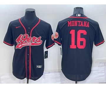 Men's San Francisco 49ers #16 Joe Montana Black Stitched Cool Base Nike Baseball Jersey
