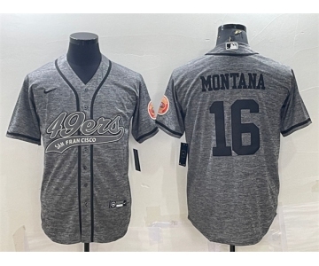 Men's San Francisco 49ers #16 Joe Montana Gray With Patch Cool Base Stitched Baseball Jersey