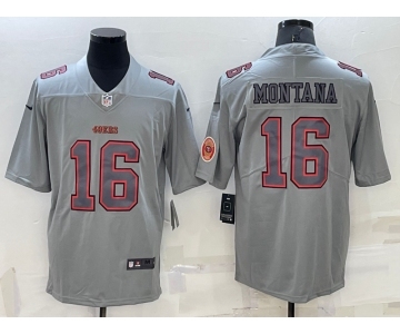 Men's San Francisco 49ers #16 Joe Montana LOGO Grey Atmosphere Fashion 2022 Vapor Untouchable Stitched Limited Jersey