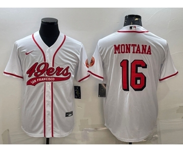 Men's San Francisco 49ers #16 Joe Montana New White With Patch Cool Base Stitched Baseball Jersey