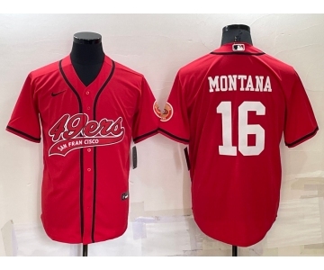 Men's San Francisco 49ers #16 Joe Montana Red Stitched Cool Base Nike Baseball Jersey