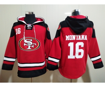 Men's San Francisco 49ers #16 Joe Montana Red Team Color New NFL Hoodie