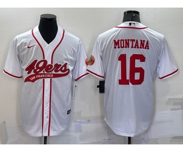 Men's San Francisco 49ers #16 Joe Montana White With Patch Cool Base Stitched Baseball Jersey
