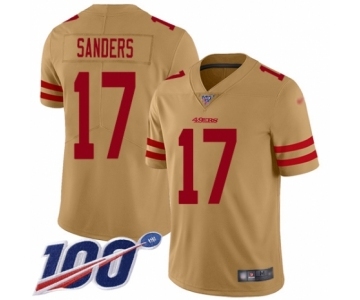 Men's San Francisco 49ers #17 Emmanuel Sanders Limited Gold Inverted Legend 100th Season Football Jersey