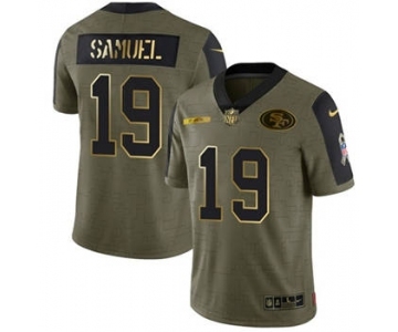 Men's San Francisco 49ers #19 Deebo Samuel 2021 Olive Camo Salute To Service Golden Limited Stitched Football Jersey