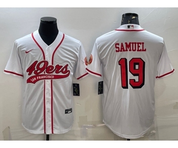 Men's San Francisco 49ers #19 Deebo Samuel New White With Patch Cool Base Stitched Baseball Jersey