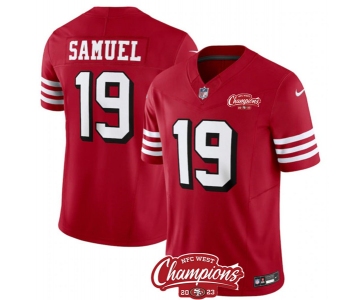 Men's San Francisco 49ers #19 Deebo Samuel Red 2023 F.U.S.E. NFC West Champions Patch Alternate Football Stitched Jersey