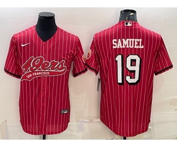 Men's San Francisco 49ers #19 Deebo Samuel Red Pinstripe Color Rush With Patch Cool Base Stitched Baseball Jersey